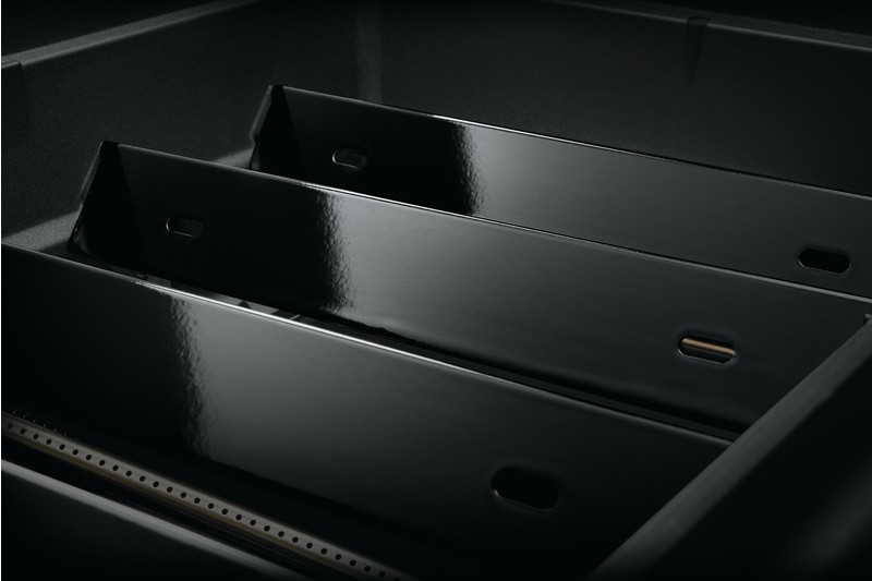 The staggered set up creates even heat distribution and protects the burners, while the porcelain coating is easier to clean.