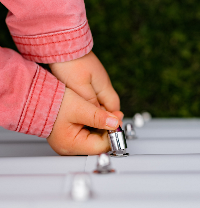 - Acorn nuts finish the inside of the garden kit, ensuring smooth edges while digging in your soil
